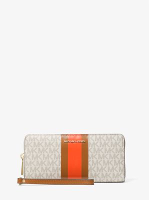 Portefeuille en cuir michael kors noir en cuir à prix d'occasion. Portefeuilles & étuis michael kors femme, une touche d'élégance à portée de main. Découvrez la collection de portefeuille michael michael kors femme noir sur spartoo livraison gratuite, retour offert commandez au meilleur prix vos portefeuille michael michael kors femme noir avec spartoo ! Sportwear chic, casual ou encore élégante, il n'y a pas une silhouette qui détonne avec cet accessoire que le créateur a voulu très versatile. Portefeuille enveloppe à trois volets carmen en cuir de taille moyenne avec logo.